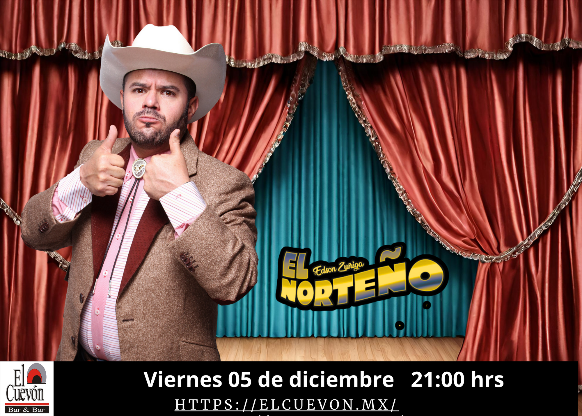 EDSON ZÚÑIGA «EL NORTEÑO» VIERNES 05 DE DICIEMBRE 21:00 HRS + Añadir Google Calendar + exportación iCal / Outlook 00 días 00 horas 00 minutos 00 segundos Fecha Dic 05 2025 Hora 8:00 pm Coste MXN600.00 Más Información Leer más Localización El Cuevon Escenaria Organizador EL CUEVON Teléfono 5578853121 Leer más Compartir este evento