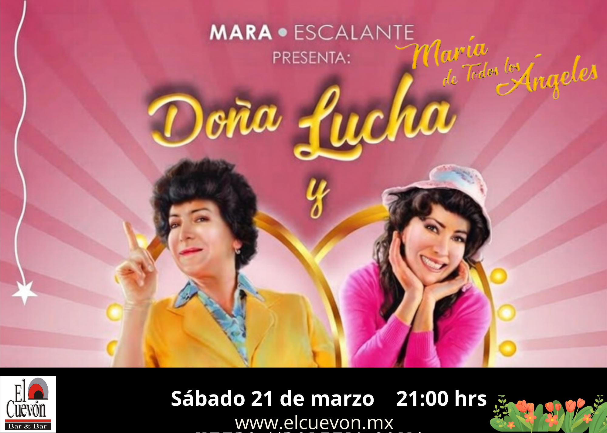 MARA ESCALANTE «LA REINA DE LA COMEDIA» SÁBADO 21 DE MARZO 21:00 H + Añadir Google Calendar + exportación iCal / Outlook 00 días 00 horas 00 minutos 00 segundos Fecha Mar 21 2026 Hora 9:00 pm Coste MXN500.00 Más Información Leer más Localización El Cuevon Escenaria Organizador EL CUEVON Teléfono 5578853121 Leer más Compartir este evento